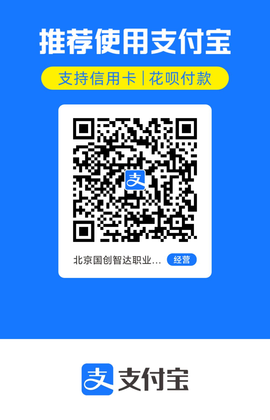支付确认:为保障您的权益,支付成功后,请务必在支付宝账单详情或备注栏中,确认收款方为 “北京国创智达职业技能鉴定有限公司”。